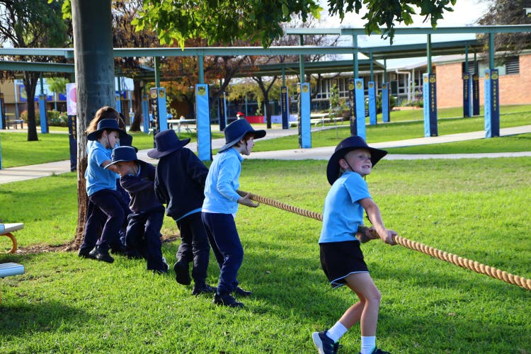 Each Friday, Narrabri Public School comes together for Friendship Friday, where students gather on the middle grass area between the infants and primary spaces, as well as the back oval, to enjoy lunch as a whole school. Classes and year groups are mixed, giving students the opportunity to socialise across different ages.